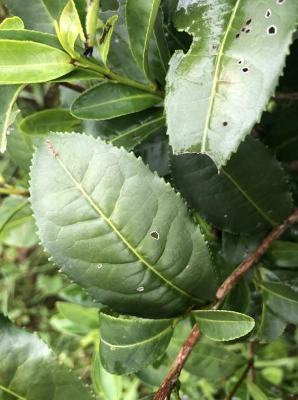 【性狀特征】白毫早茶樹品種為無性系。灌木型,中葉類,早生種。二倍體。樹姿半開張,葉片稍上斜狀著生。葉長橢圓形,葉色綠,葉身稍內折,葉面平,葉尖漸尖。芽葉淡綠色,茸毛多,一芽三葉百芽重72.0g。花冠直徑2.9cm,花瓣6-8瓣,子房茸毛中等,花柱3裂。白毫早茶樹芽葉生育力強,生長速度快。春茶萌發期在3月上旬。產量高,5齡茶樹的生產適驗茶園每畝可達420kg。